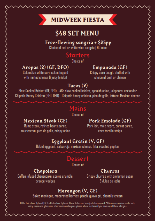 πΆοΈ NEW: Midweek Fiesta β $48pp Set Menu π